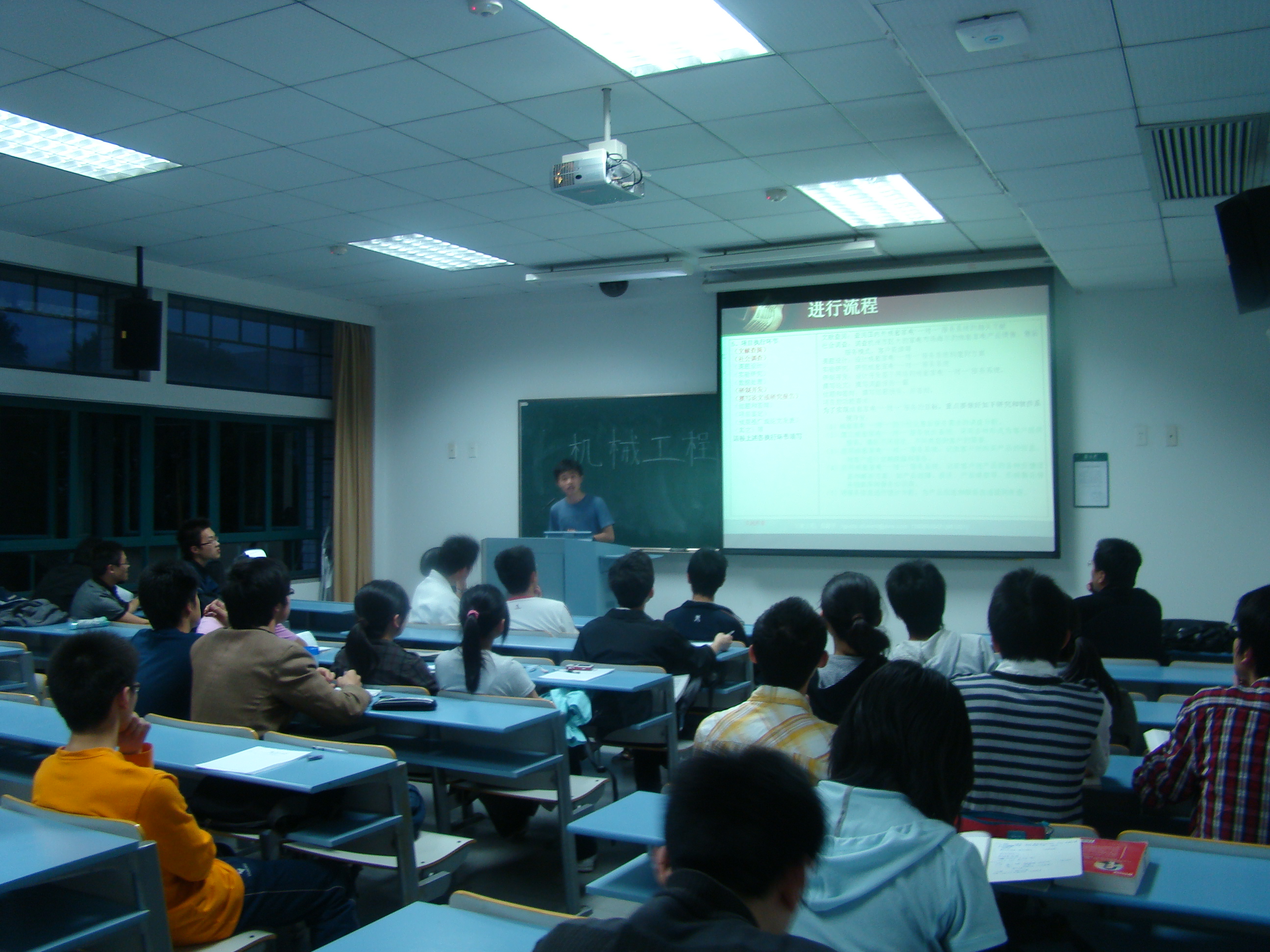 首先工业工程05级的张路平学长对SRTP项目做了简单介绍并结合生动有趣的PPT展示了SRTP项目的完成过程以及成果,并着重介绍了他在参赛过程中的心得体会以及比赛中遇到问题克服问题的经验等,他主要从整体流程、中期检查、科研结果和经费申请几个方面做了具体讲解,给予参赛同学很多实际的指导。张路平学长还鼓励参赛同学们在积极参与的同时,一定要坚持不懈,不轻言放弃。