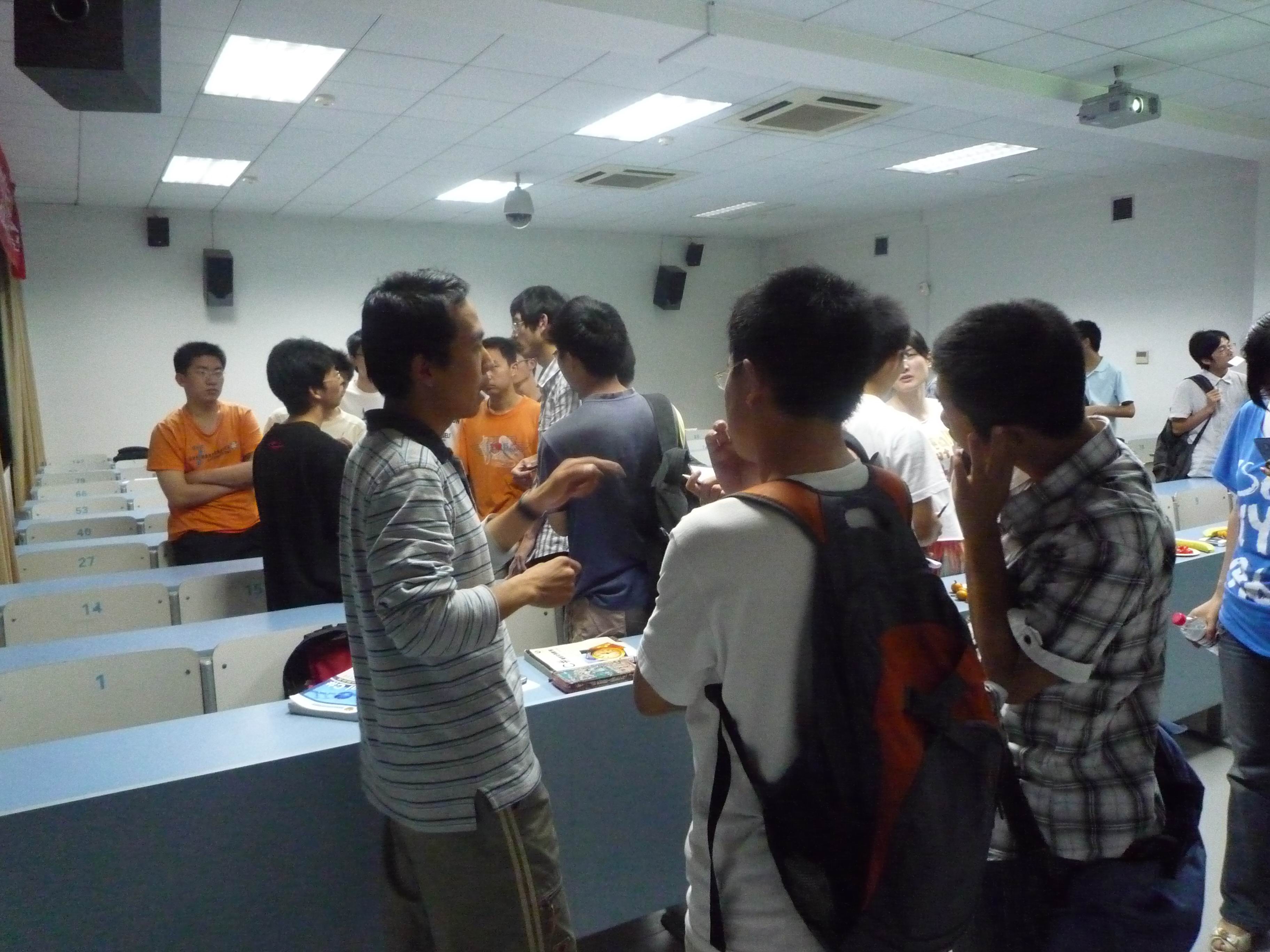 第一环节结束后,活动进入互动交流的环节。同学们纷纷围在学长身边向他们取道求经,吐出心中的疑云。如我所采访的出国方面,咨询的信息详细到:如何出国、如何制定计划和实现自己计划等。学长们耐心倾听,不时给出中肯意见,结合各个同学的实际情况做出了针对性的悉心指导。