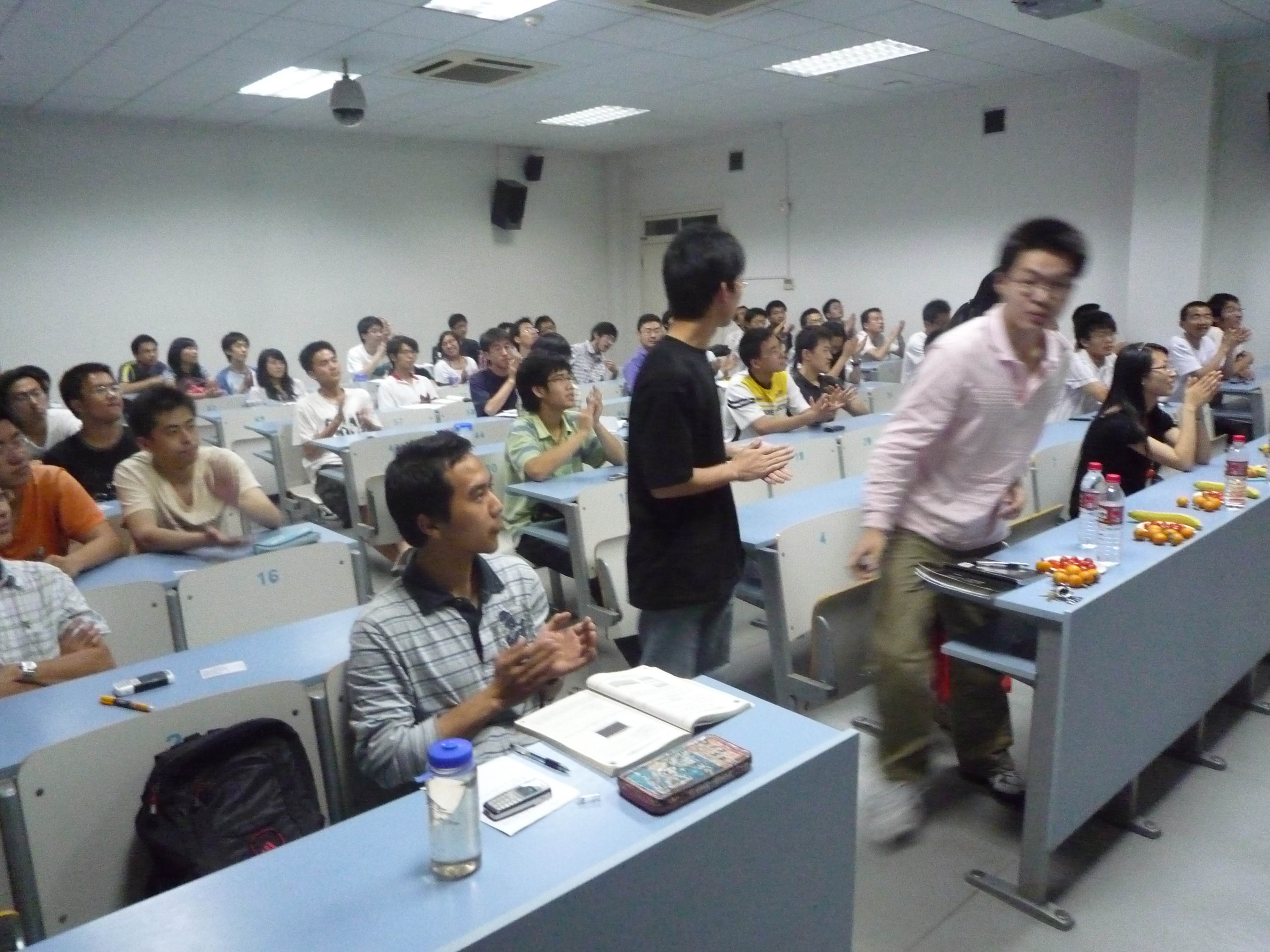 最后是冯强学长讲述自己的直博经历。冯强学长说自己大二时对人生之路还一片茫然,学长当时跟着潮流想出国,到最后发现出国不是自己喜欢的,白白浪费了自己宝贵的大学时光。从中提醒我们要尽早确定自己的目标。期间,冯强学长还说到大学还是以学为主,鼓励大家要好好学习。