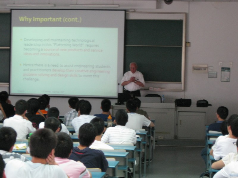 首先,Zorowski教授就创新的重要性展开了讲解。他指出,当今世界,产品的生产和开发正处于一个前所未有的速度,全球各大公司无不重视新技术的研究和探索。为了能在趋向于扁平化的世界里争夺科技领导权,有必要帮助工程技术学生提高创新能力。在谈到创新的特征时他认为,创新是一种心理过程,必须同时具备原创性和适应性。他以一张漫画为例做了详细解说,其机智、幽默的讲课方式博得了现场同学的阵阵笑声。