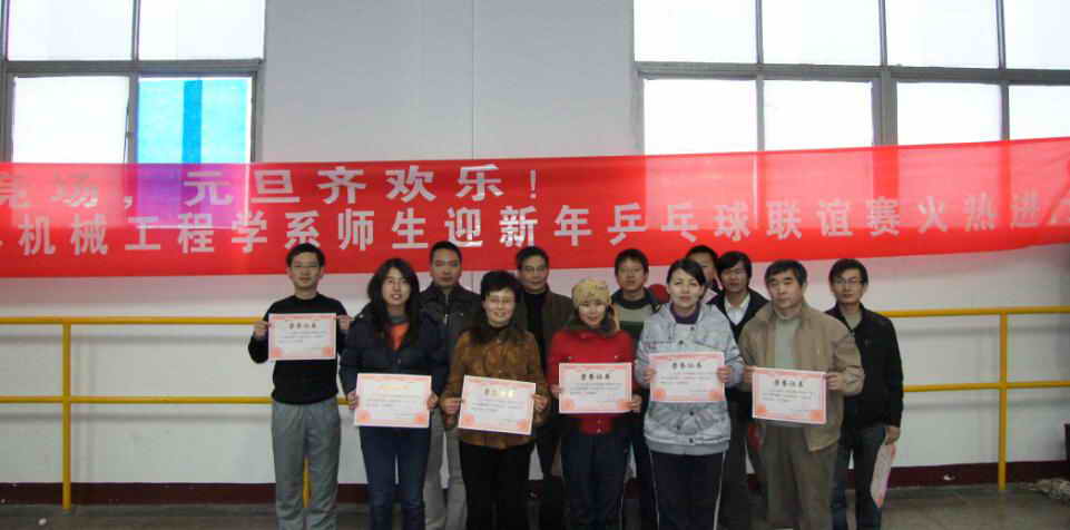 在辞旧迎新的时刻,机械工程学系别出心裁地举行师生联谊乒乓球赛,让教室和同学都能在紧张的学习科研生活中得到放松,更给师生都带来了一个良好的交流机会,以球会友,曾经不认识的,认识了;不熟悉的,熟悉了。机械系师生的浓浓热情在这飘雪的冬日中让人感到异常温暖,就让我们机械系的师生携手并进,共同迎接新的2010,创造新的辉煌明天!