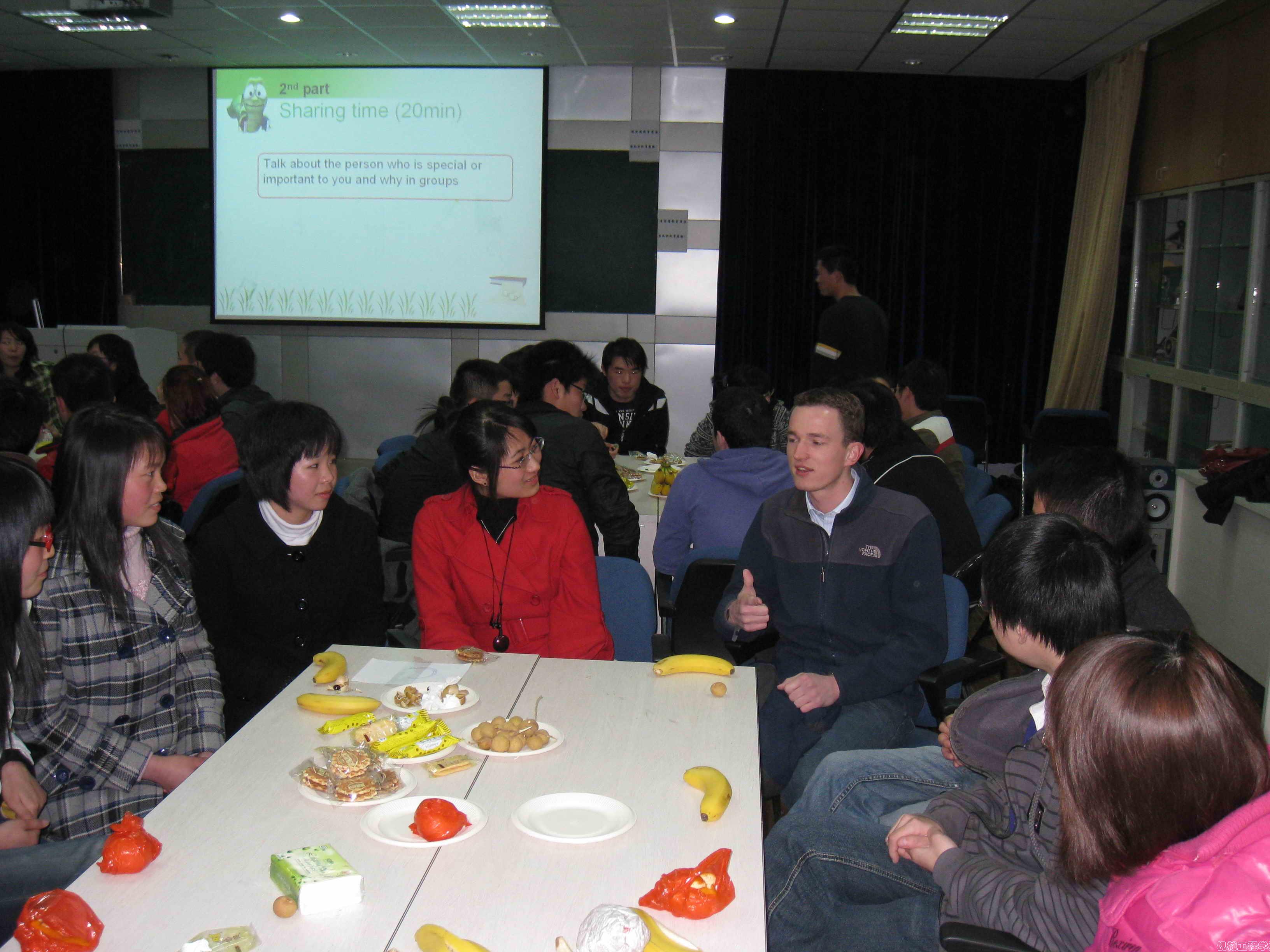 活动接近尾声,为了给大家一个自由交流的机会,活动还安排了一个Free talking 环节,而此刻大家早已没有了刚开始的陌生感,围绕在几个外国朋友的周末开心地畅谈起来。