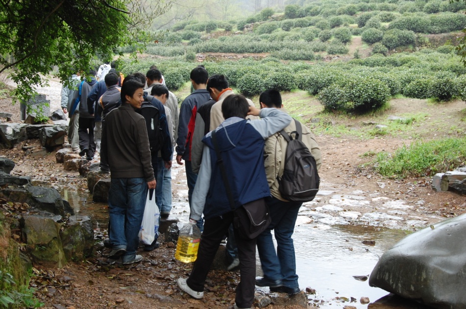 我们的目的地定在了九溪和龙井村。早上从紫金港坐车出发,大家也都起的比较早,经过两个小时的公交车程,在中午10点钟左右就到达了九溪。午餐定在了九溪的烧烤店,大家吃的都比较开心。吃完午餐后,大伙一起步行游玩九溪十八涧美景。步行1小时后达到龙井村,体验龙井村空气中特有的清香。在龙井村稍作休息之后我们坐车来到了杭州植物园。稍游玩之后回到了紫金港。