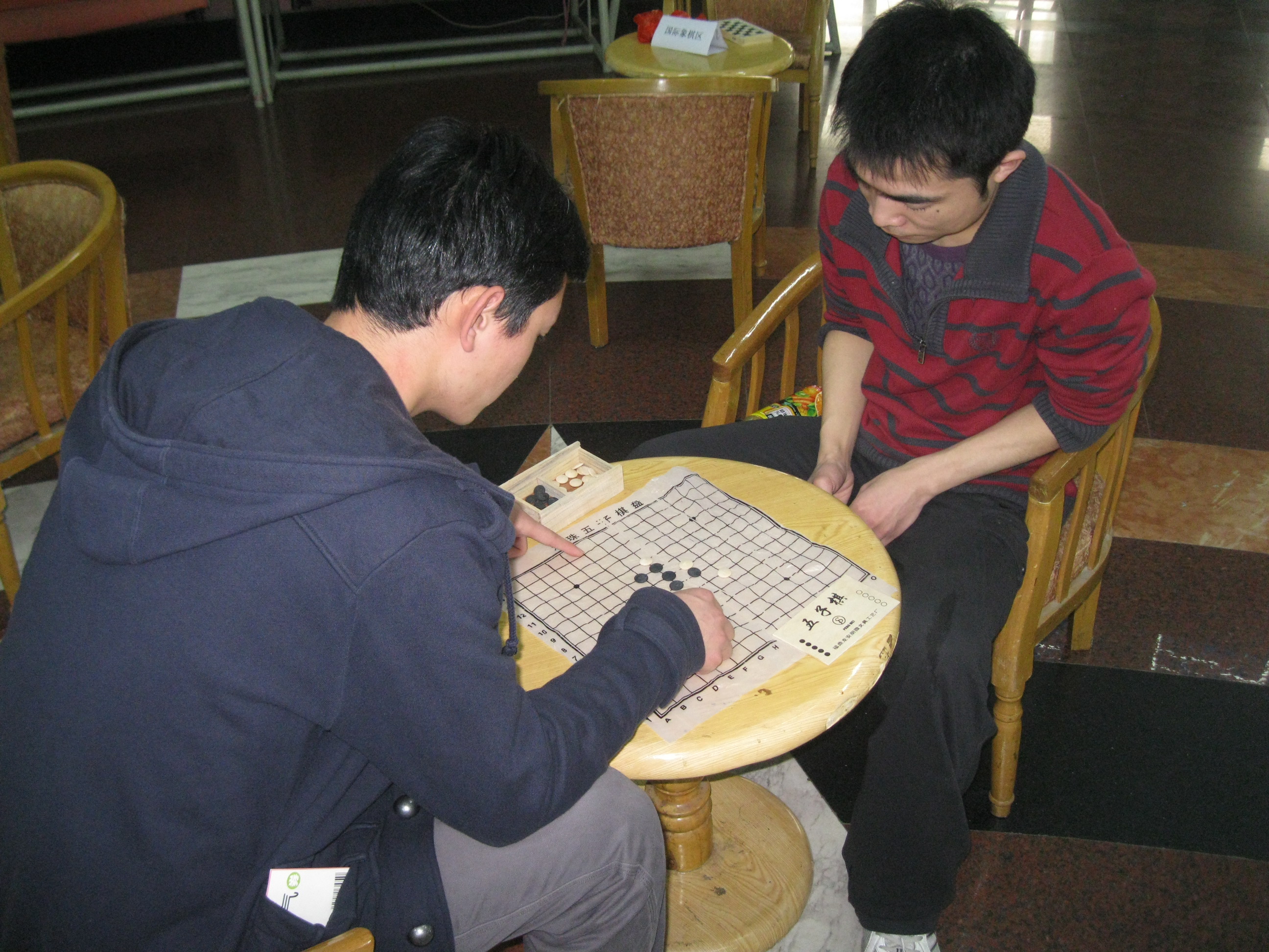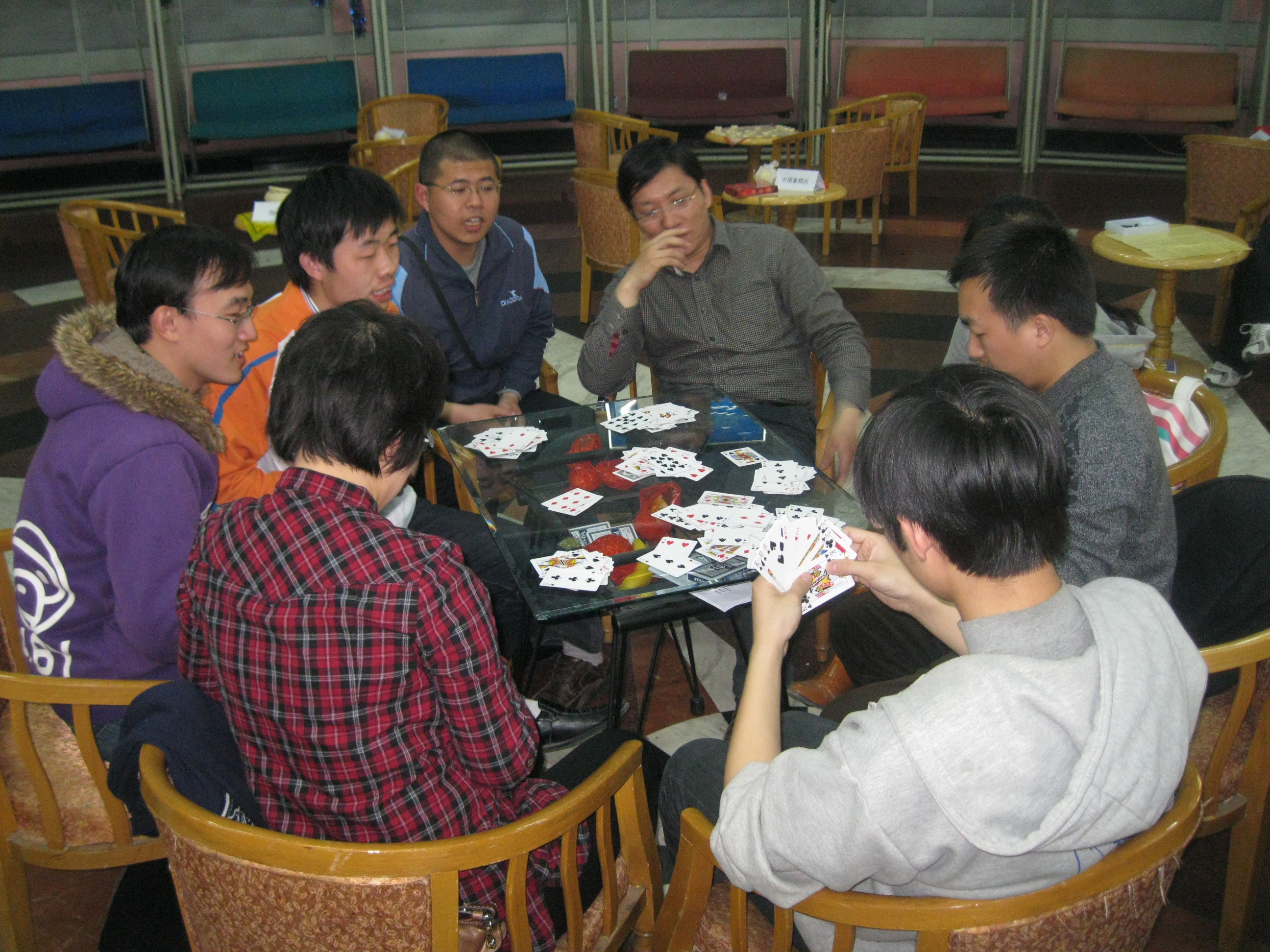 本次活动现场分为象棋区、围棋区、五子棋区、扑克区、三国杀区等区域,参加人员可以自由分组,自由活动。同学们兴趣广泛,除了最热门的三国杀以外,其他棋牌类游戏也都有人参与,并且高手如云。在活动现场,同学们一反学术研究的严谨态度,在游戏中龙争虎斗不止,欢声笑语不断,好不热闹。