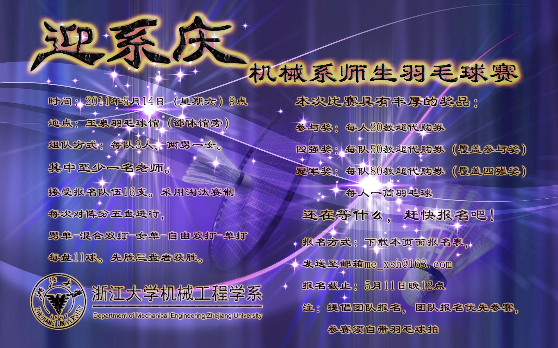 报名邮箱:me_xsh@163.com(报名表见附件)