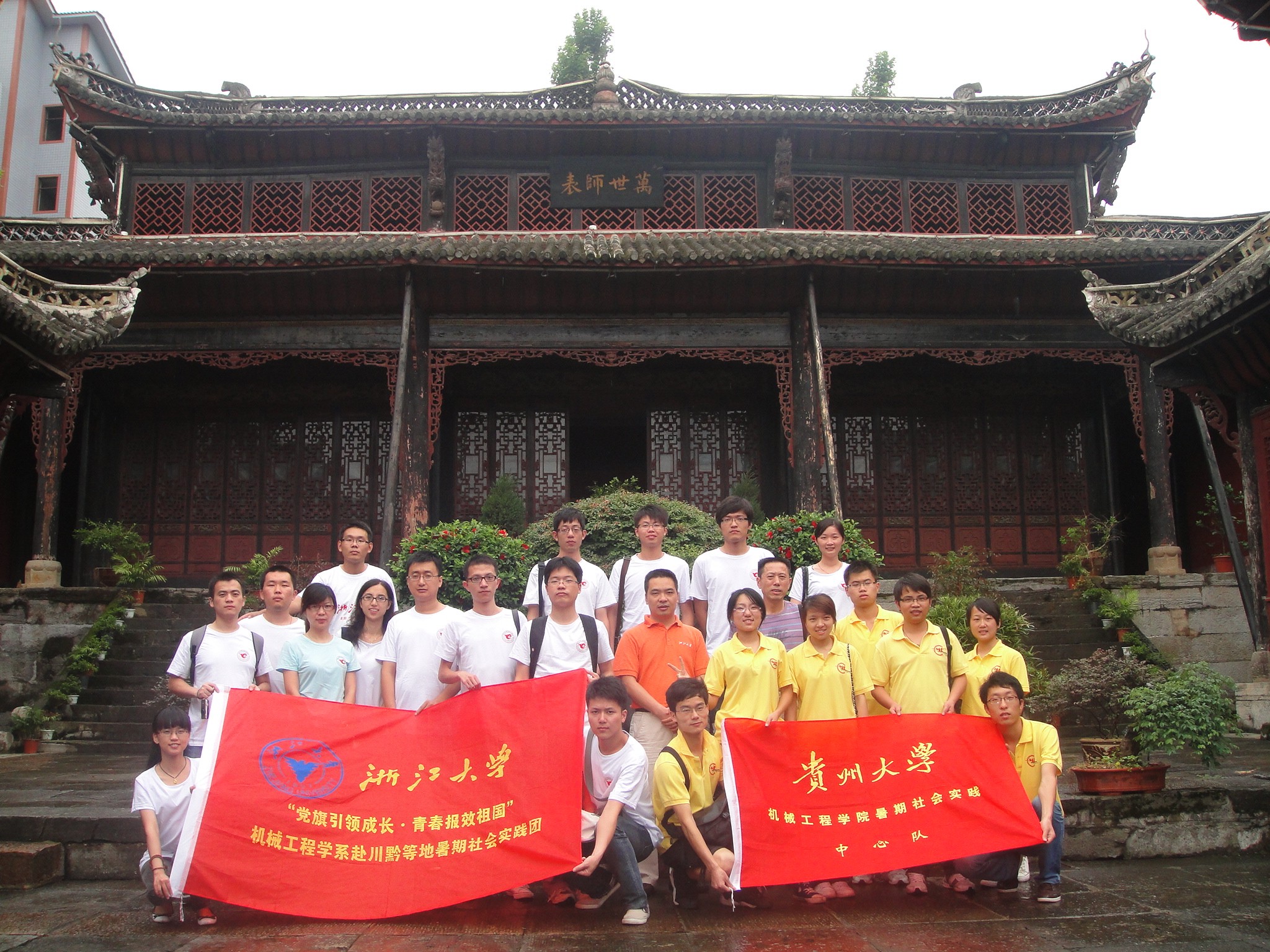 7月22日下午,由浙江大学机械工程学系李金林老师率队,贵州大学机械学院党委副书记谭华军及师生陪同,机械系赴贵州湄潭社会实践小分队及贵州大学社会实践小分队一行共21人驱车前往遵义湄潭——浙大第二故乡——进行参观学习。