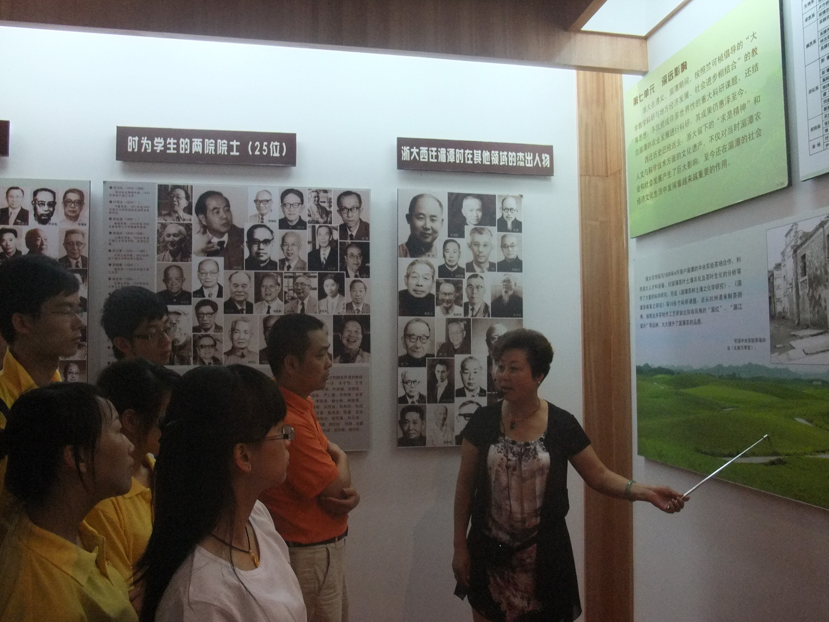 文军长征,浙大西迁遵义湄潭,谱写了中花教育史上一页优秀而辉煌的篇章,是中华民族文化抗战的重要组成部分。同时,为黔北山区播下现代科学文明种子,对日后社会经济文化发展产生了积极深远的影响。浙大师生与湄潭人民相濡以沫,共度时艰的情谊,被世人传为佳话,至今仍在延续。在纪念馆详实的史料和印老师动情的解说下,我系师生切实感受到了湄潭人民的热情,湄潭人民对老一辈浙大人的养育之恩终身难忘。
