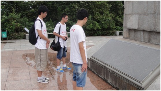 图注一:寻访人员在阅读碑文,缅怀烈士