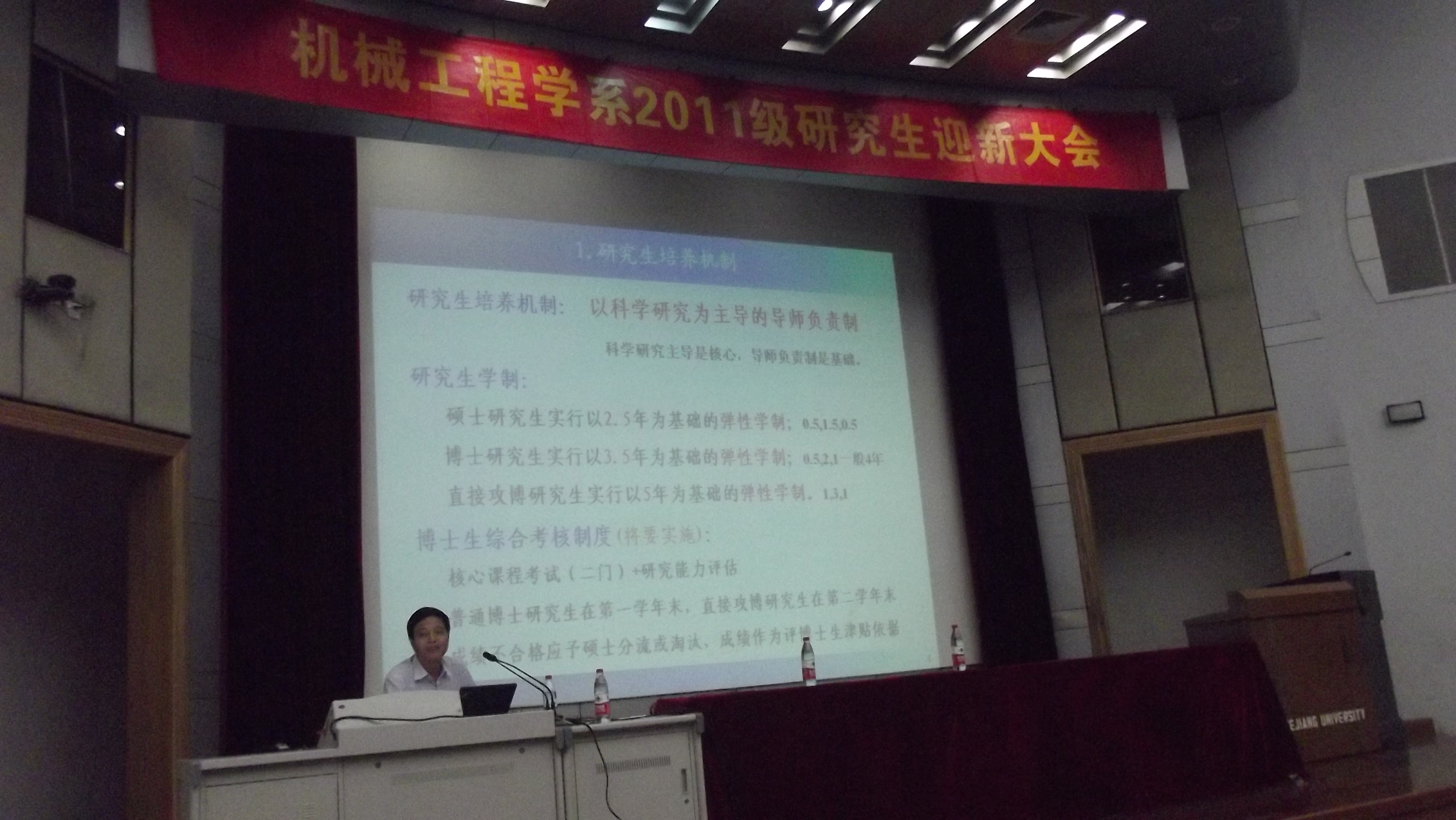 2011年9月4日上午,浙江大学机械工程学系2011级研究生开学典礼暨迎新大会隆重举行。大会后,机械系副主任潘晓弘教授、系党委副书记李金林老师分别给2011级研究生新生做了精彩的辅导报告。