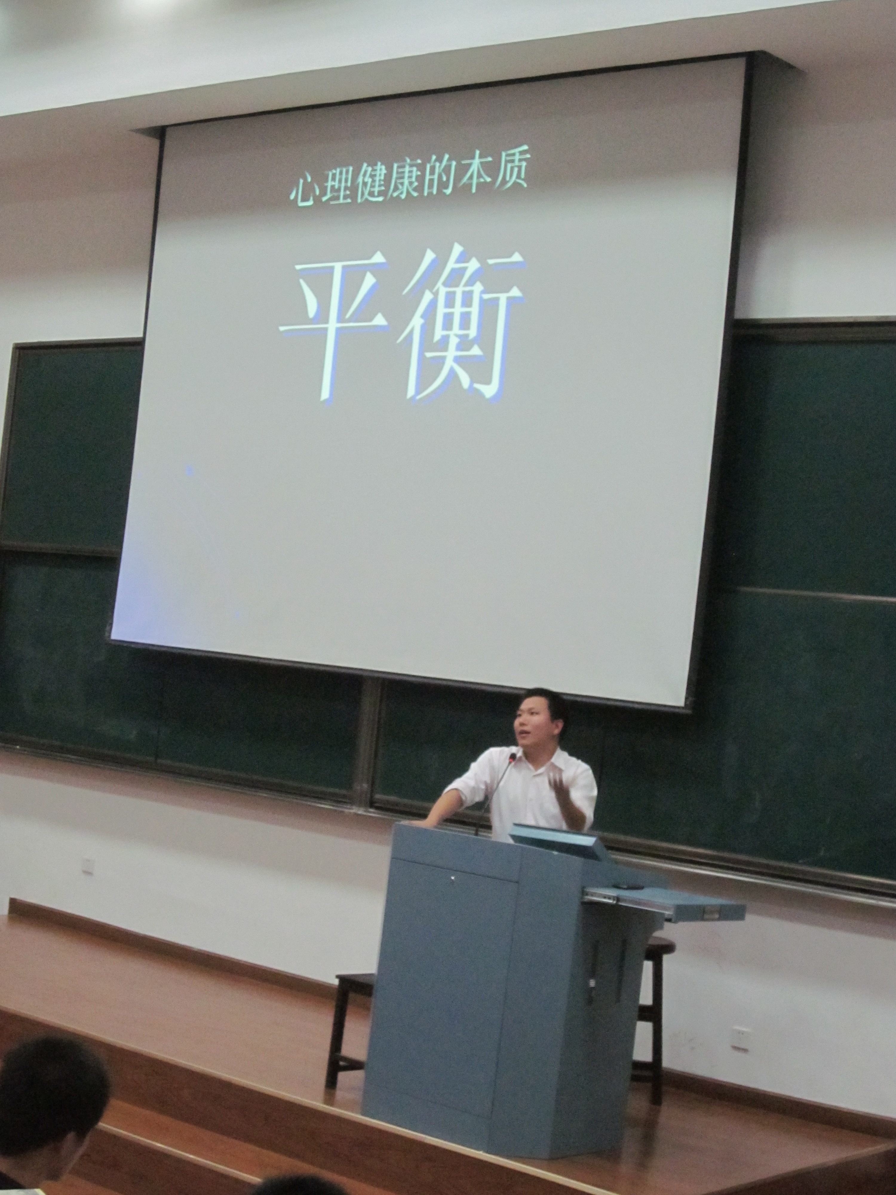 报告会尾声,何老师还给予我们一些建议,如:学会独立思考,自我反省;估计自己行为的适宜性;结交密友分享快乐与忧虑;平衡时间;内心安静、快乐;多换位思考;不要孩子气;关注时事;寻求他人帮助等。最后何老师还向大家推荐了一些心理健康方面的书籍,如《心理学与生活》、《社会心理学》等等。