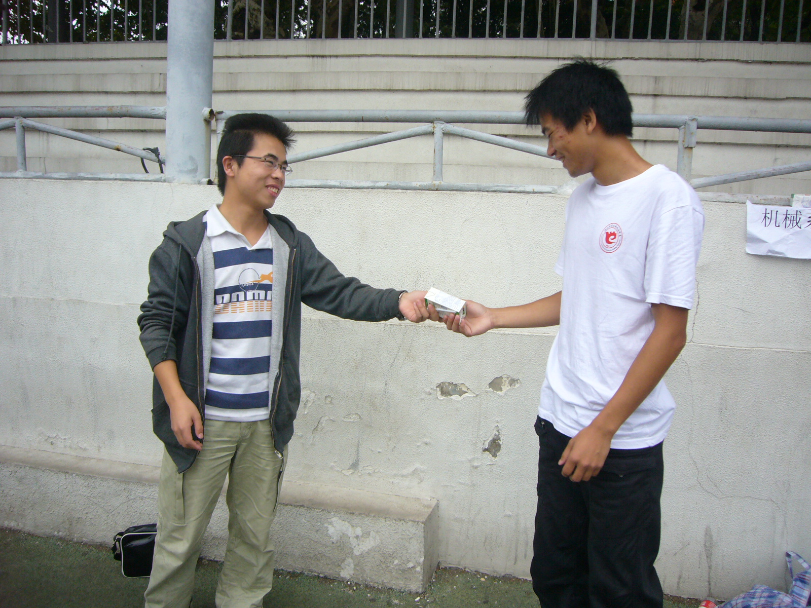 与运动员们一同早起的还有我们研会辛勤的工作人员们。他们为运动员们准备钉鞋、铁饼、铅球等训练器材,提醒运动员们在训练中注意安全。出于对运动会的大力支持和对运动员们的全面关怀,研会还为参与早晨训练的运动员们提供了每人一袋牛奶。