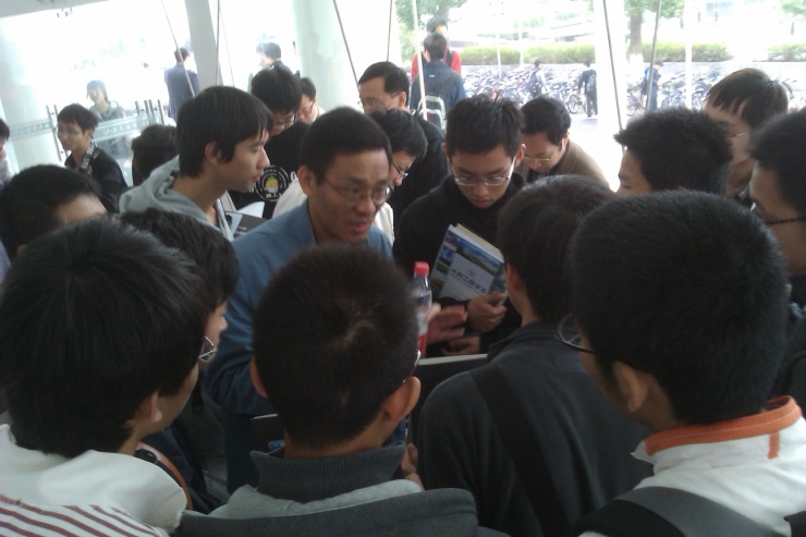 下午,我系在蓝田学园宿舍区进行了现场咨询,具有丰富咨询经验的雷勇老师、李立新老师、王正肖老师也汇合进来,一起为对机械系感兴趣的学生答疑解惑,答复了他们一个又一个的问题。很多上午咨询过的同学再次过来,咨询一些更加细致具体的问题。也有很多同学被我系精致丰富的展板吸引过来,想要进一步了解机械系下的各专业。同学们普遍关心机械系下各专业的不同特点以及未来就业方向,对此,各位老师和学长从自己的亲身经历和科研情况出发,具体详实地为同学们提供解答。当同学们问到成绩问题时,老师们更是热情地对他们提出了鼓励和期望。所有前来咨询的同学心中的种种困惑,都一一地得到了满意的答复。丰富的科研经历和学识涵养,让老师们在咨询现场游刃有余,他们睿智、生动的话语不时引发了师生们的笑声,使得现场气氛十分活跃。直到咨询接近尾声,许多同学还围绕在老师身边,共同探讨一些他们感兴趣的问题。