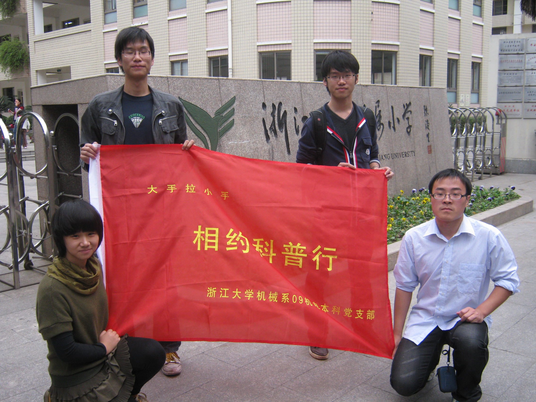 为了深入贯彻我校党委关于全面推进加强建设“五好党支部”的要求,按照“重基层,重建设,重实效”的具体要求,加强基层学生党支部的建设工作,全面实践学生基层党支部与学生党员的创先争优,为新时期发展培养出一批特别能战斗的党员同志,机电09本科党支部积极进取开拓创新,打造出“大手牵小手 相约科普行”赴浙大附小系列活动,走出校园,走进小学,将我们对于科技的热情的种子播撒在小学的田野上。