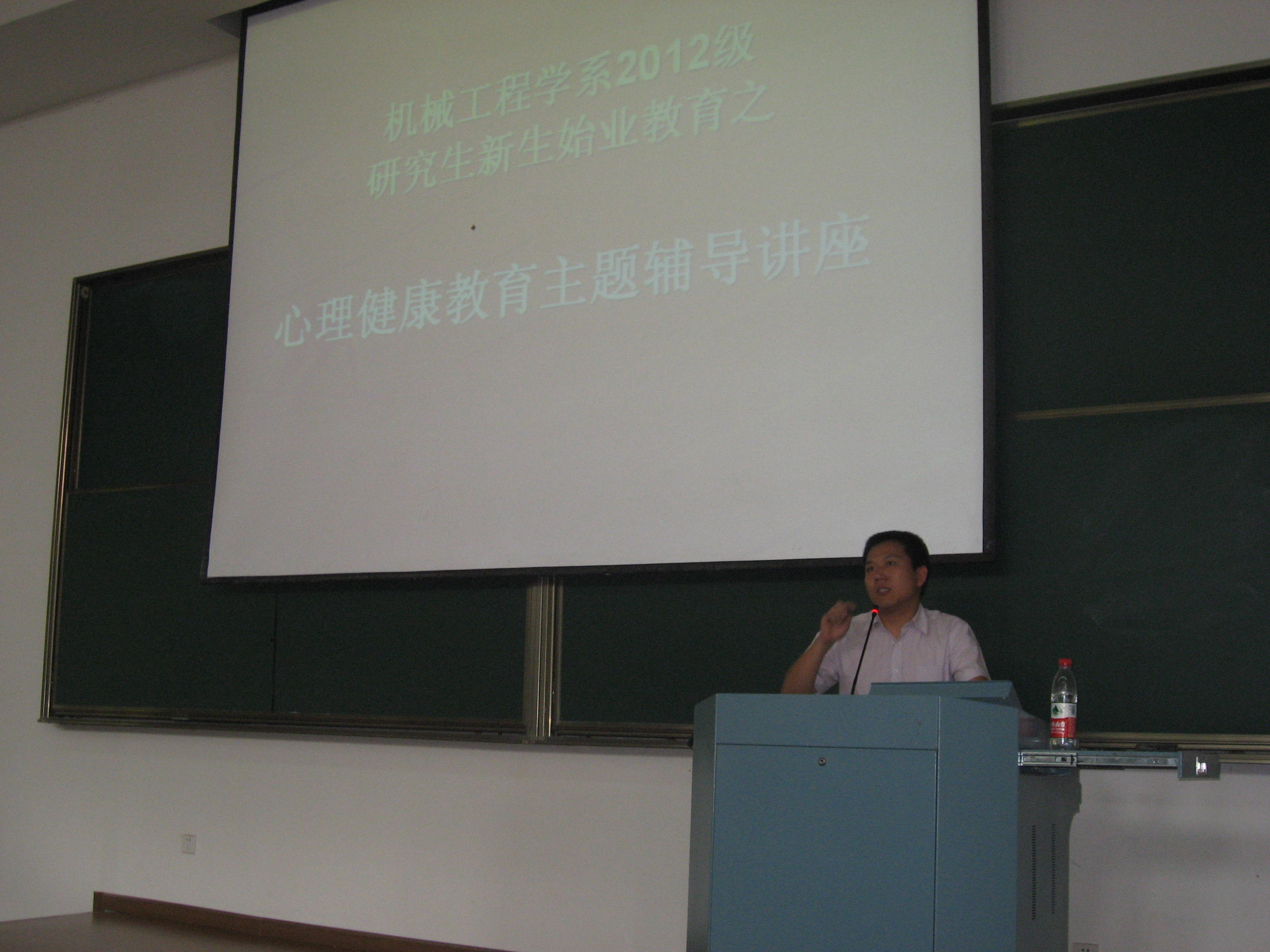 2012年9月8日下午两点三十分,机械工程学系2012级研究生新生始业教育之心理健康教育主题辅导讲座在教一234准时举行。本次讲座邀请到的嘉宾是浙江大学研究生心理指导与服务中心副主任何俊杰老师,何老师从事多年的研究生心理健康教育,拥有丰富的讲课与咨询经验。机械工程学系研究生辅导员闫小龙老师和全体2012级研究生新生一起聆听了何老师的讲座。