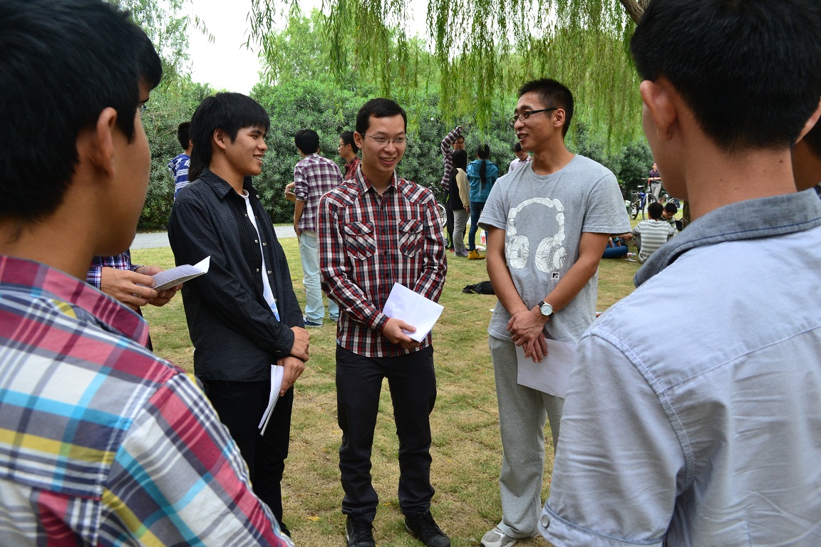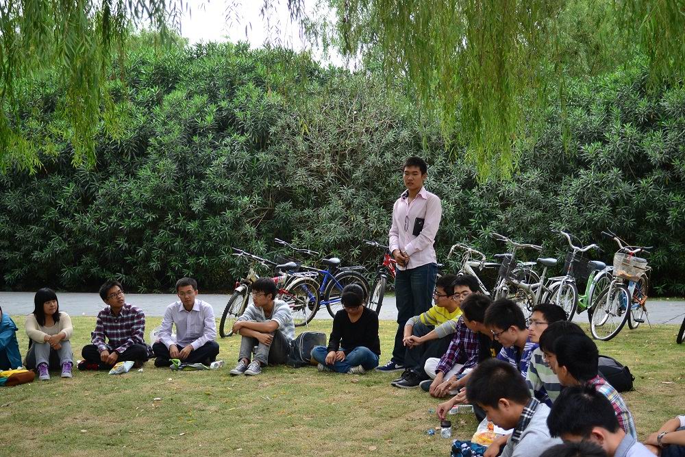 在西区大草坪上,大家围坐成圈。破冰活动在团学联主席安宸毅同学热情洋溢的开场白中拉开了序幕。他用振奋人心的演讲让同学们领略到团学联的活力和朝气,也使在座的各位深深地感到自己责任重大。安宸毅的演讲过后,各位副主席和各部长分别陈述了自己分管部分的主要职责和任务,增进相互了解。