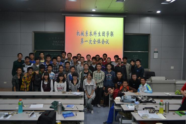 2012年10月27日晚,机械系本科生团学联第一次全体会议在紫金港校区西一105教室成功举行。系团委副书记杨铮与机械系本科生团学联全体成员欢聚一堂,庆祝新一届团学联在刚刚结束的2012年校运动会中出色完成各项工作,总结经验,展望未来。团学联主席安辰毅主持会议。