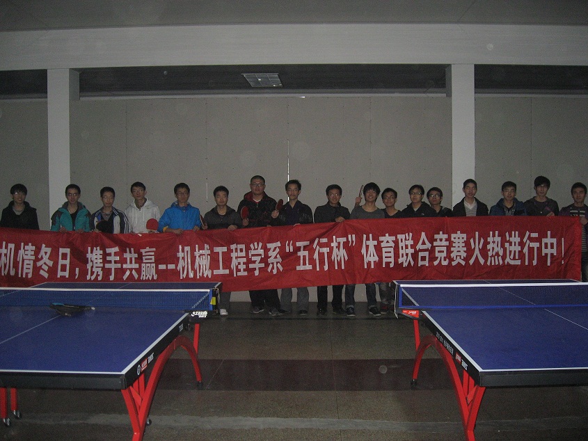 11月23日、24日,机械系“五行杯”五项联赛开幕赛暨乒乓球赛在玉泉校区乒乓球房成功举行。来自我系本科09、10级的各专业班级参赛队伍经过激烈的争夺,最终机电0903班、机电1003班、机自0901班、机自1001班分获此项比赛的一、二、三、四名。