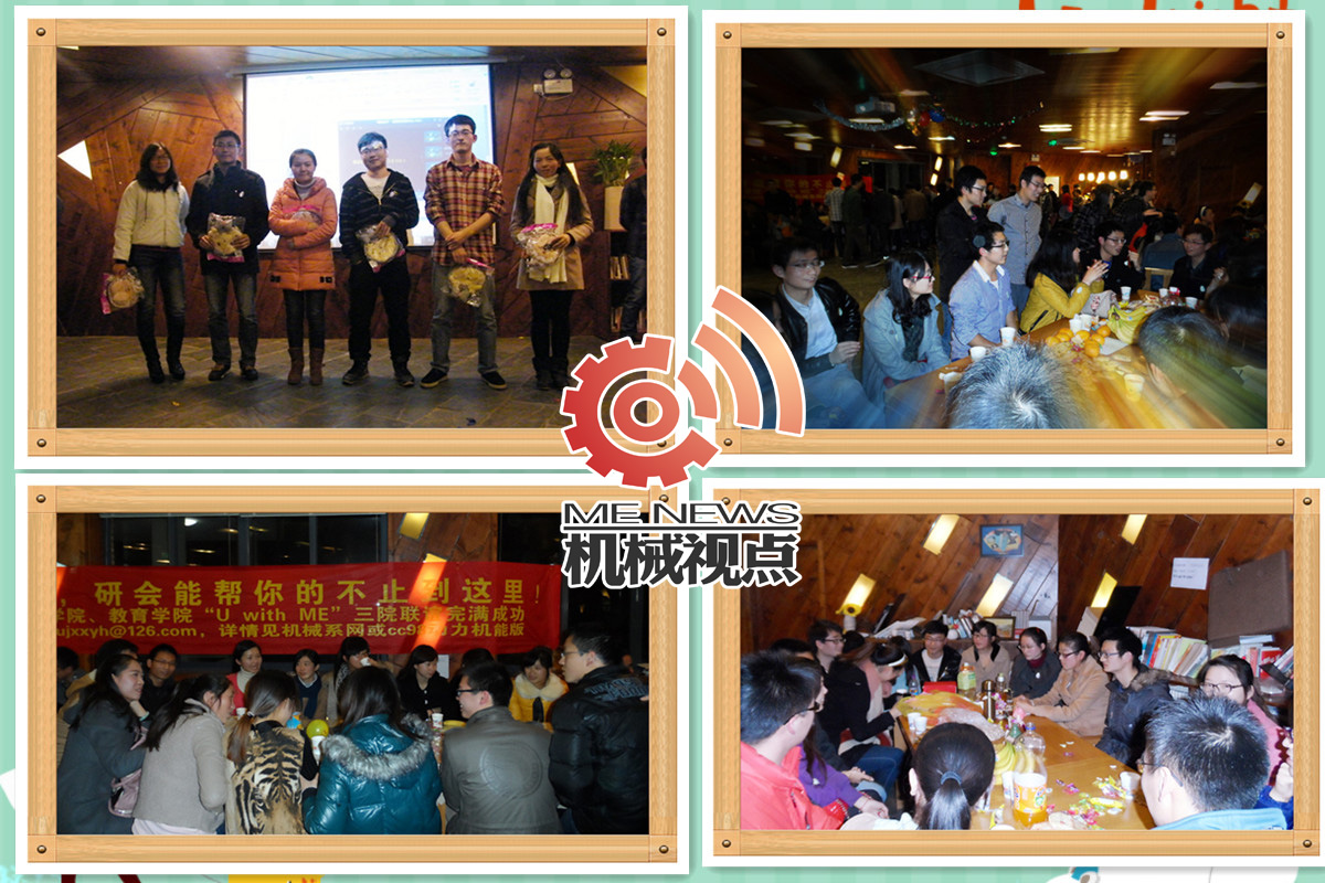为加强学院交流,增进学院间同学友谊,浙江大学第十四届研究生体育文化节之“U with ME”大型联谊活动在12月2日,浙江大学西溪校区图书馆咖啡吧精彩上演!这次的三院联谊由机械系研究生会、人文学院研究生会以及教育学院研究生会联合举办,共吸引了来自人文学院和教育学院的32名女生以及机械学院的40余名男生。