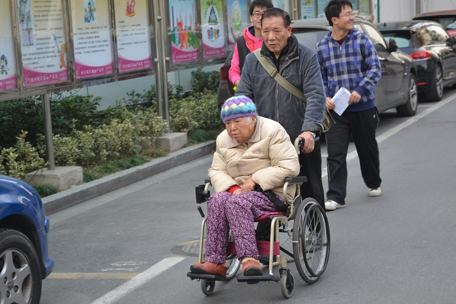 图注:爷爷推着奶奶散步