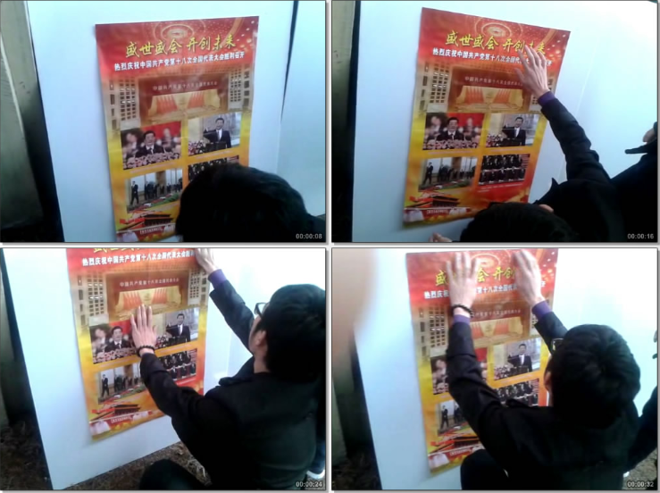 图注:张贴“十八大”宣传海报