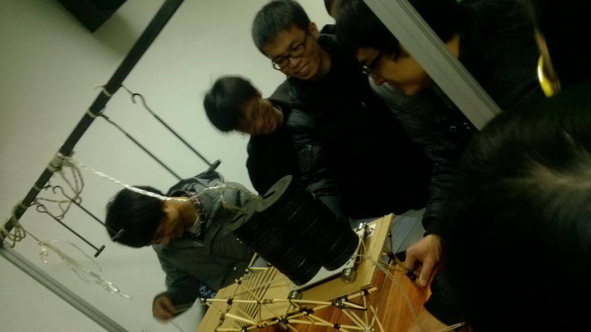 晚上7点,浙江大学第二届工程力学创新设计大赛作品评审暨闭幕仪式正式开始。这次闭幕式由浙江大学机械科技创新协会主办,会长马宁胜和应林炜、马良学长作为评审出席。首先由各个小组展示自己的作品。在这个环节,各个小组的代表通过ppt等方式,展示自己的设计方案,阐释其科学性和可行性,以及其创新设计的思路。同时,他们拿来自己制造的作品现场进行试验,场面热闹精彩,同学们无不为自己的桥梁承重记录的不断翻新而欢欣鼓舞。其中章鱼虫队同学们的桥梁结构精巧,承重力大,引来参赛同学和评审们的喝彩。