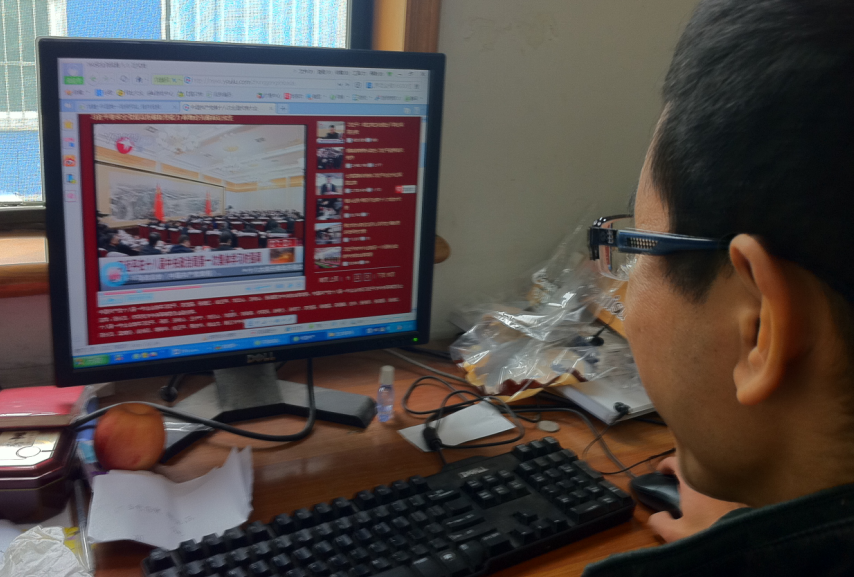 图注 吕景祥同志在关注十八大会议