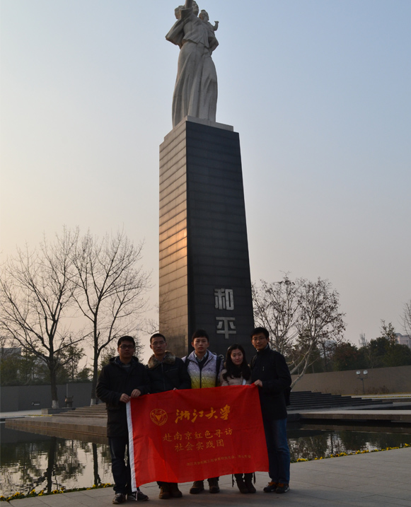 12月27日上午,实践团早早地来到雨花台烈士陵园,从南门进入雨花台,沿着中轴线一直往北走。首先经过忠魂亭,忠魂亭是由南京市30万共产党员交纳特殊党费所建。该建筑由"忠魂亭"、"忠魂广场"、《思源曲》水池、《忠魂颂》浮雕四部分组成,表达了英烈威武不屈、悲壮卓绝的历史风采。然后参观了烈士纪念馆,宽敞明亮的展厅内按照中国共产党发展的四个历史时期为主线,串联各时期重要事件,以烈士牺牲时间先后为顺序,共陈列了127位牺牲在雨花台及南京地区的革命烈士的文物史料。“雨花台烈士平均年龄30岁,袁咨桐烈士是年龄最小的,只有16岁。”工作人员告诉我们,这不禁让我们想到我们自己也肩负着建设祖国的使命。接着我们通过了纪念桥和烈士纪念碑广场,来到了烈士雕塑群像,整座塑像由大小不等的179块花岗石雕塑而成,生动地展现了党的工作者、工人、农民、知识分子、战士、学生和报童等九位不同形象的烈士英勇就义前不屈的光辉形象。在雕塑下,我们紧紧地排在一起,举起右臂,握紧拳头,面对烈士忠魂,面对血染的雨花石,重温入党誓言。我们大声宣誓,为共产主义奋斗终身。