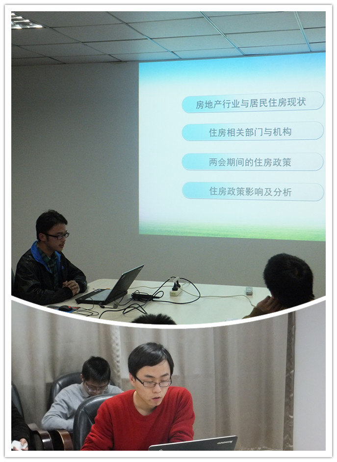 随后支部的三位预备党员杨巍、何志强和王华宇分别就两会热点问题做了报告。杨巍选取的主题是“收入分配改革”,他认为实现收入翻番做“大蛋糕”固然重要,但是合理的分配才是首要考虑的;同时要合理调整税收制度,而不是单纯的增税减税;不断规范某些服务业,提高服务业整体素质;最后收入分配改革应惠及大众,而不是着眼于小范围。何志强选取的主题“住房保障改革”,他就我国居民的住房现状和两会期间的提出的住房保障政策等问题做了深入的分析。王华宇以“贫富差距问题”为主题,从我国贫富差距现状及原因、贫富差距过大带来的危害、抑制贫富差距过大的措施这三方面入手详细阐述了我国贫富差距这一与广大群众息息相关的热点话题。