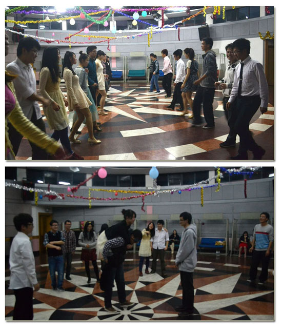 在简短的致辞之后,男生们开始自由邀请女生跳舞,恰恰,慢三,平四,慢四,在这一段段优雅的舞曲中,大家开始享受着交谊舞带来的乐趣。从陌生到相识,舞会现场的气氛也更加融洽。