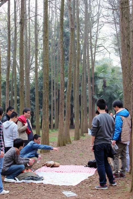 此时天气晴好,正是江南最好的风光,大家步行前往植物园,在树林中席地而坐,围成一圈,各自谈起属于自己的“中国梦”。