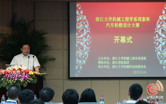 在热烈的掌声中,机械系团委书记项淑芳老师为本次活动致辞。她希望大家秉承浙大“求是创新”的精神,展现当代青年引领风尚、勇于创新的精神。随后,郑泰集团公司董事长郑东海先生宣布本届大赛正式开幕,他介绍了郑泰集团公司的发展历程,大赛的初衷,“如今的市场是追求个性化的市场,希望同学们发挥创造力、想象力,设计出新颖独特、充满创意的作品,将我们的中国创造推向海外,推向世界。”郑董也对大赛的充满了期待。