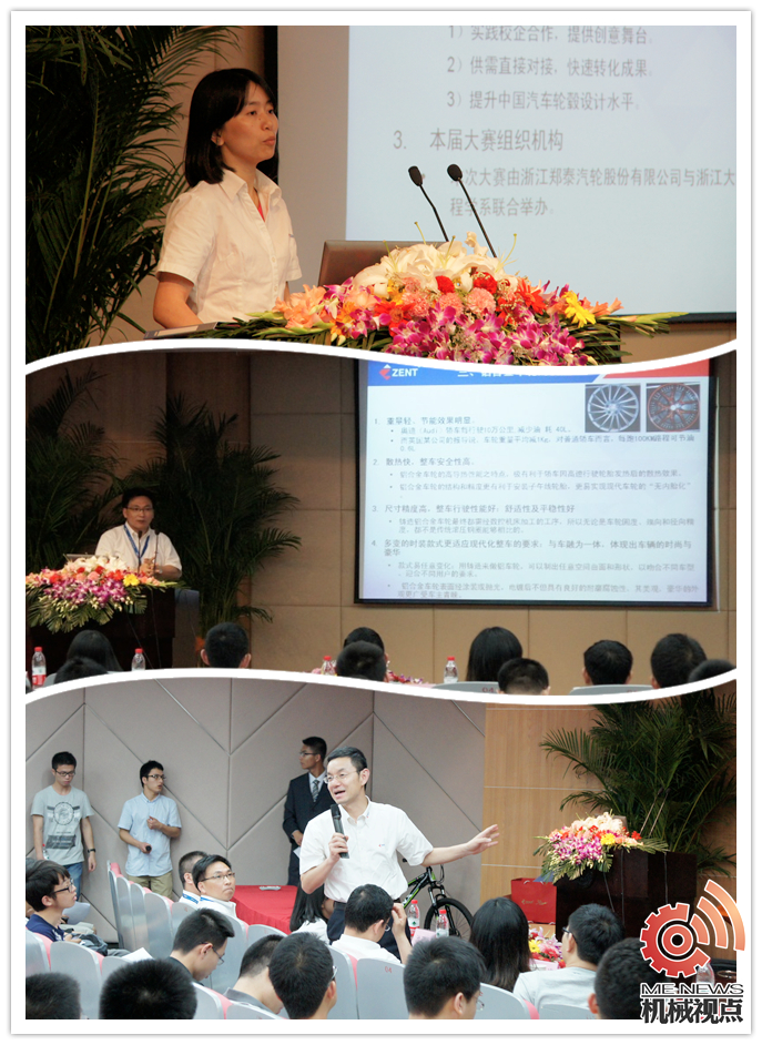 5月24日下午2:30,以“追求个性生活,引领车轮时尚”为主题的首届“郑泰杯”汽车轮毂设计大赛在浙江大学玉泉校区永谦活动中心第二报告厅拉开了帷幕。本届大赛旨在“探索校企合作模式,开发学生创造潜力”,由浙江大学机械工程学系主办,浙江郑泰集团公司赞助,浙江大学学生机械科技创新协会承办。