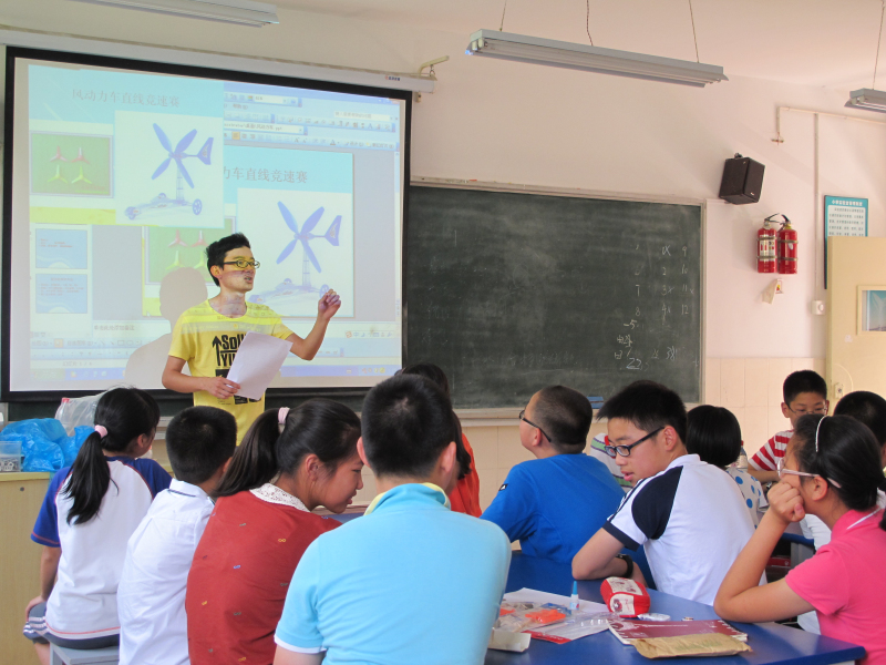 “科普小课堂”活动也得到了其他学院同学的支持,5月17日,几位自告奋勇的志愿者与机械系同学一起,再次前往浙大附小,帮孩子们为比赛做最后的准备。一场模拟比赛随即开始,丰厚的奖品刺激了孩子们的求胜欲,他们兴奋极了,眼睛始终盯着风车,手攥得紧紧的,嘴里不停地喊着加油,生怕自己的风车失败了。