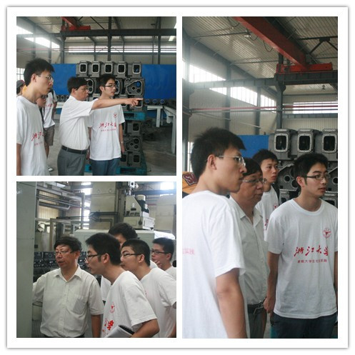 公司人力资源部葛部长与姚工热情地接待了实践团一行,并由姚工带领实践团参观了位于总部的柴油机缸体零件加工厂区和公司历史及相关产品陈列室。据姚工介绍,目前常柴公司的设计部负责设计柴油机的整体设计,其中缸体是由公司自己生产,相关的铸造及粗精加工工艺设备一应俱全,其他设计件采用外协的方式,由公司严格控制其质量并在位于常州市新区的新投产的装配车间中进行装配。