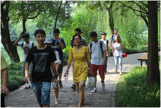中午12时半,同学们从校门步行至西湖边,沿着苏堤一路向太子湾公园进发。午后的西湖,艳阳高照,行走在苏堤浓绿的柳荫下,观赏着两边湖光山色,呼吸着沁人心脾的桂花香气,和身边同学聊起生活中的点滴……大家在优美如画的西湖风景中放松了身心,同时也在团结温馨的班级氛围中增进了相互的了解。