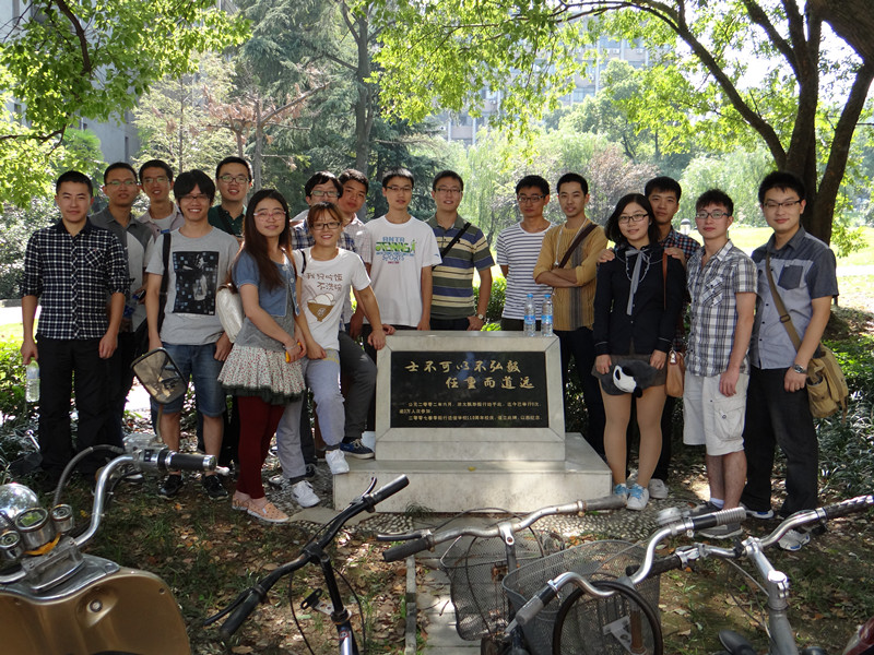 13号下午一点,同学们在教七门口毅行碑前合影,攀登老和山。士不可以不弘毅,一路上,大家看到很多老年人尚能做到重阳登高,我们这些青年人更应当锻炼强壮的体魄,迎接未来科研生活的挑战。