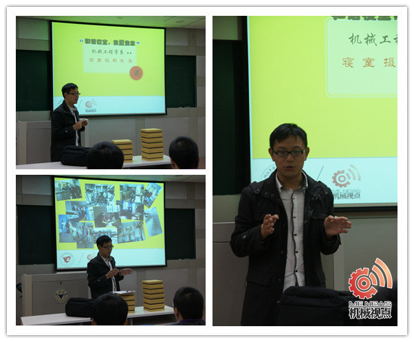10月28号晚7点,机械视点举行本次寝室摄影大赛颁奖仪式,由机械视点主任陈道泉主持,团委副书记闫小龙老师出席并发表讲话。闫老师强调每个寝室成员都要有亲如一家的观念,在一起生活三年或四年大家就像是兄弟和姐妹。举办这样一个寝室摄影比赛,不仅能展现寝室的和谐氛围,参赛过程更加值得几年后回忆。同时,他以自己的亲身经历为例,分享了和同学聚会最长聊起就是参加过的销售之星大赛。