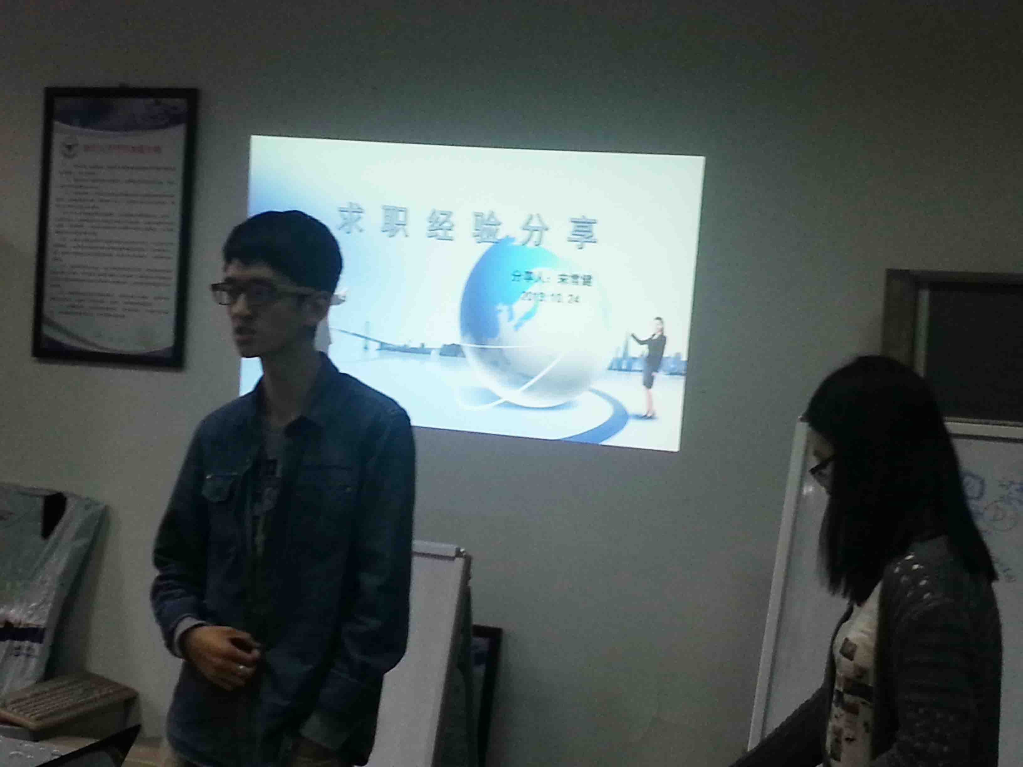 宋雪健同学作为我们班第一个拿到Offer的同学,给大家无私地分享了自己的求职经验,为大家的求职之路上扫清了一些困惑与障碍。同时,分享会也促进了大家找工作的信心、紧迫感。