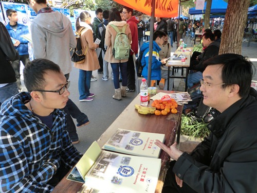 为帮助2013级同学全面了解机械工程学系和机械系各专业设置情况,以便同学们在专业确认时,结合自身兴趣、特长、性格、学习能力等条件因素,理性、主动选择和确认主修专业,11月30日,机械工程学系在本科生科的组织下,积极参与了蓝田学园的“专业宣传月”活动,进行了专业宣传咨询。咨询现场除准备了大量内容详尽的专业介绍资料及展板外,还有各专业老师及优秀学长在现场为同学们答疑解惑。