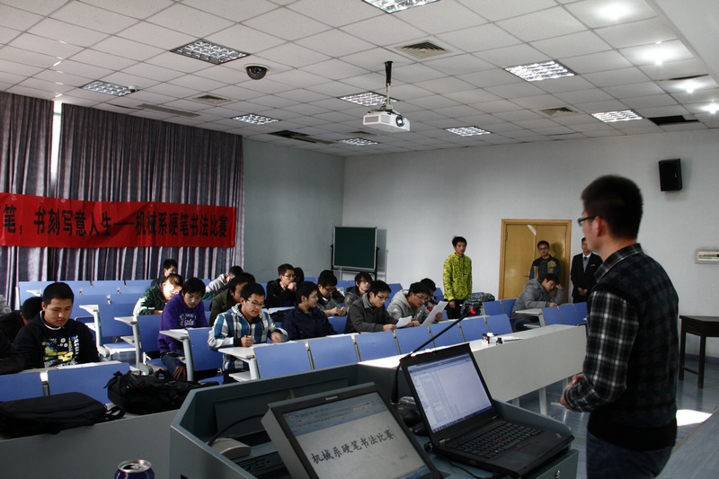 由机自1104班SQTP项目小组主办的机械系硬笔书法大赛在2013年12月1日于教七402教室如期举行,吸引了许多机械系的同学参加。大赛邀请了六艺书协书法专业的同学作为评委,保证了大赛的公正性。