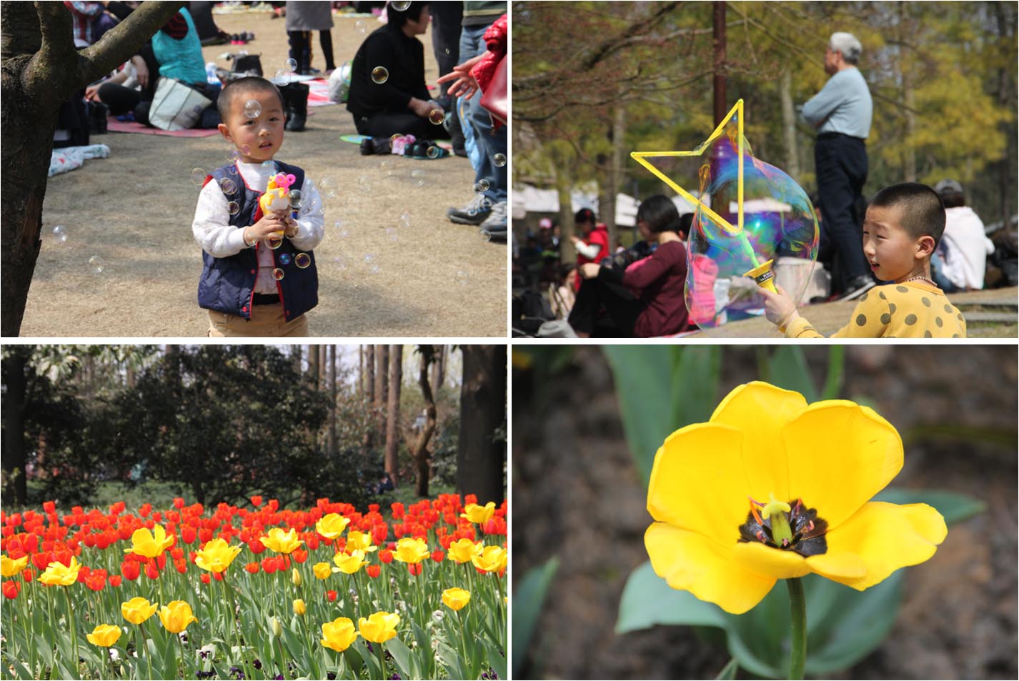 在杭州三月温婉宜人氛围的熏陶下,为了让身为工科的我们能在闲暇之时修养人文艺术的气息,我们开始寻找身边的美丽瞬间。有人抓住了童年时的乐趣,拍下了小男孩吹出许多七彩泡泡的美丽瞬间,纯真的笑脸与晶莹的泡泡在阳光的照耀下显得更为灿烂,有人拍下了孩童挥舞出巨大泡泡时喜悦的笑脸,有人对争相竞妍的花海驻足停留,也有人为了孤芳的馨香沁人而俯下身来。