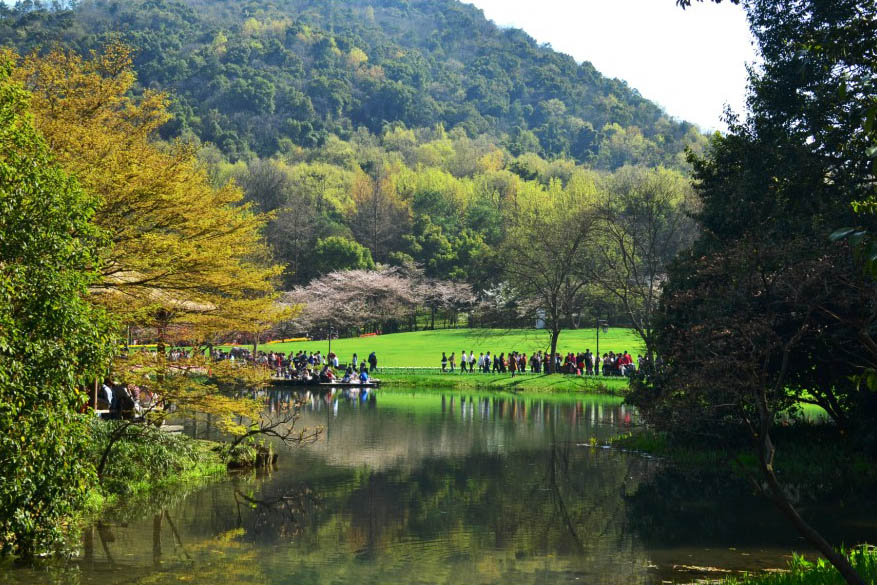 西子湖畔的太子湾公园,南靠九曜、南屏二山,东邻净慈寺、西接南高峰,北面就是苏堤的南端花港观鱼景区。太子湾公园以山为屏,以水为脉,山障水绕,气韵生动,造就了它先天的超群脱俗的美丽。