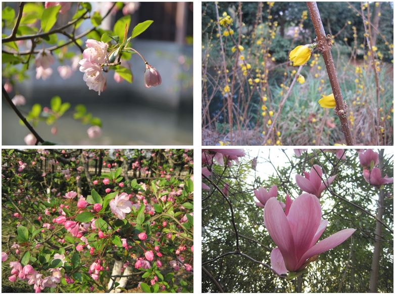 在阵阵欢声笑语中,大家很快到达了杭州花圃。沐浴在明媚春光中,徜徉在树丛花海里,同学们纷纷拿出自己的手机相机,按下快门,拍下了周围如画般美丽的景色。春日里的江南景色细腻,每一处树丛花团都充满了春天的旖旎,大家或是将镜头对准迎春怒放的花朵,或是拍下杨柳垂荫的葱葱草地,或是记录下脚下的小桥流水。许多同学是第一年来杭州生活学习,今日欣赏到如此浪漫美好的江南春景,都赞不绝口——“西湖美景三月天,春雨如酒柳如烟”,此话真的不假!