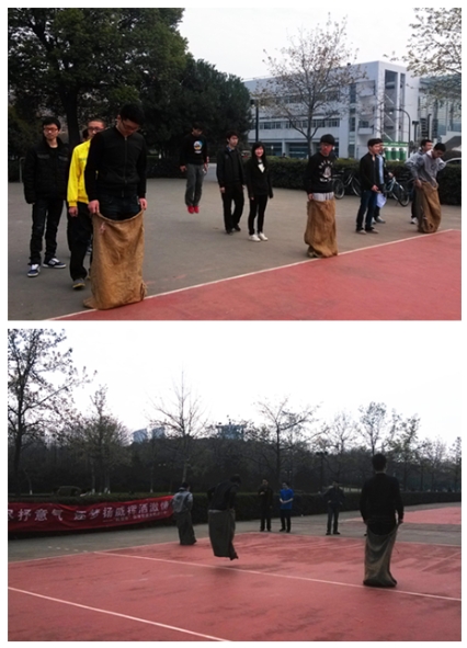 2014年3月23日上午,机械系“机情杯”体育联赛班级团体赛的第二场——趣味运动项目在紫金港紫云排球场落幕。本次趣味运动项目共有两个,分别为60米板鞋竞速与袋鼠接力跳。机电1202班在板鞋竞速和袋鼠接力跳项目中双双夺冠;板鞋竞速项目中机自1202、机电1203班分列第二、第三,而袋鼠接力跳项目的二三名则为工业工程1201班和机电1203班。