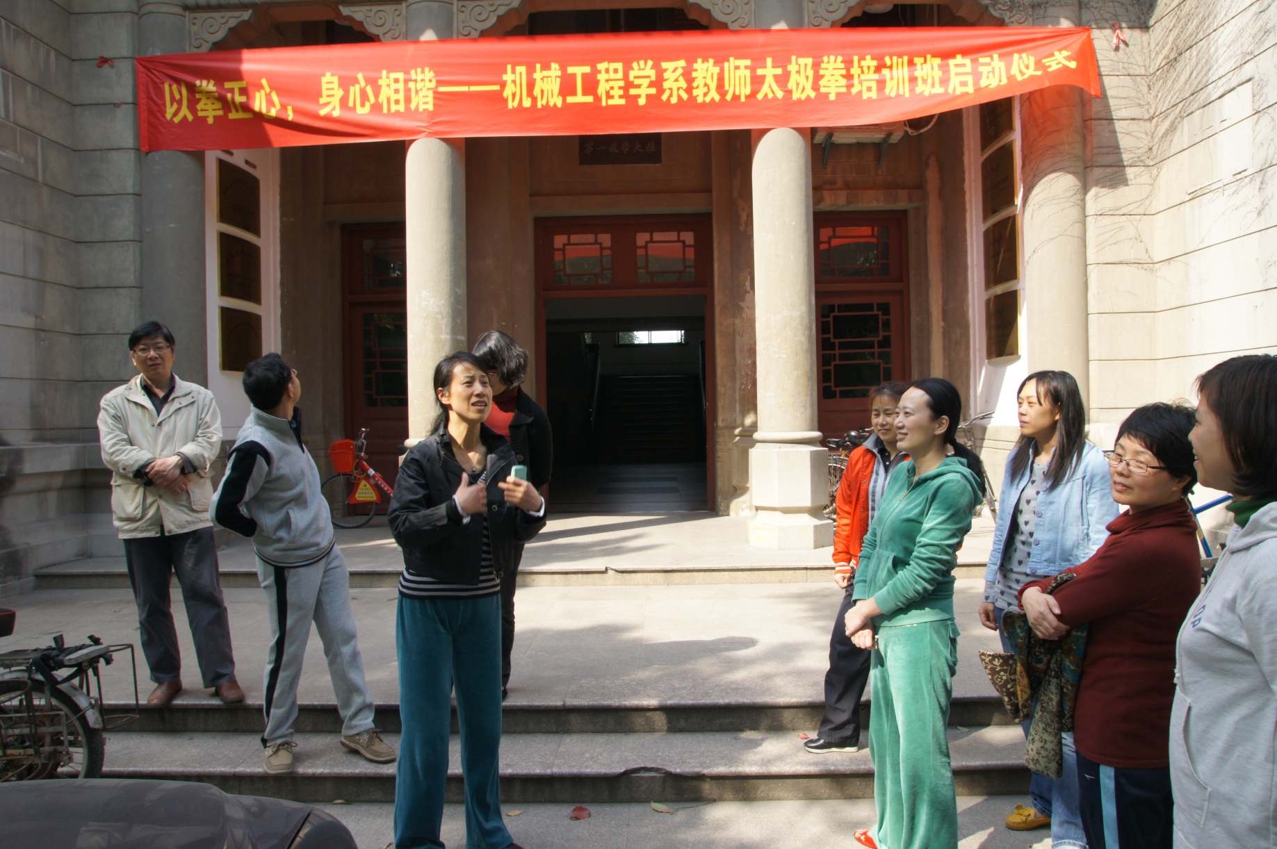 4月4日下午,在一片春光灿烂中,机械系教师太极拳培训班启动仪式在教一快乐举行。本次培训活动以“以拳正心,身心相谐”为主题,由学校公体部董晓虹教授和机械系工会主席王晓莹共同牵头组织。来自全系教学、科研和管理岗位的15位教师参加了启动仪式暨首次培训。