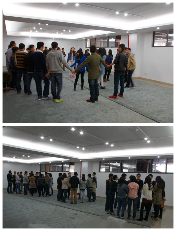 “大圈套小圈”游戏,男生女生们首先反方向手拉手转圈,然后根据主持人指示,大家跟面对面的Ta互相认识。开始时大家都表现得比较拘谨,但经过一两次的认识了解,大家相互交流的气氛变得活跃起来。
