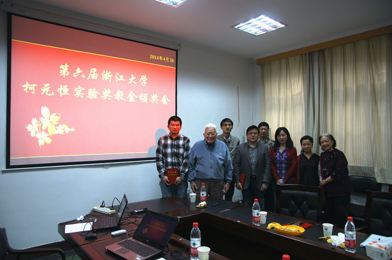 图注:中心建设情况汇报  图注:获奖合影 “机械视点”新闻宣传中心 图/文金挺 附: 浙江大学柯元恒实验奖教基金由已故机械系柯元恒教授的同事董太和、王启东教授等人倡议,于1997年3月经学校批准设立。基金捐赠人为柯元恒教授子女及生前好友,均为退休多年的老教师,捐资总额共计人民币拾肆万贰仟元。该基金旨在发扬和传承柯元恒教授的爱国敬业、重视实践、积极创新、勤俭办学、无私奉献的高尚品德与可贵精神,激励浙大师生员工发扬求是创新、理论密切结合实践的优良学风,在教学与科研中高度重视实验这一重要环节,提高人材的素质,为“科教兴国、强我中华”服务。为了做好基金的管理、使用、筹集和评审等工作,成立了“柯元恒实验奖教基金理事会”和“柯元恒实验奖教基金评审委员会”。基金之收益用于奖励机械工程学系和材料系金属材料实验室在实验室建设、实验教学及创新教改、实验技术与方法研究等方面有突出业绩且德才兼备的教师和实验技术人员。到目前为止共有65人次获该奖项。