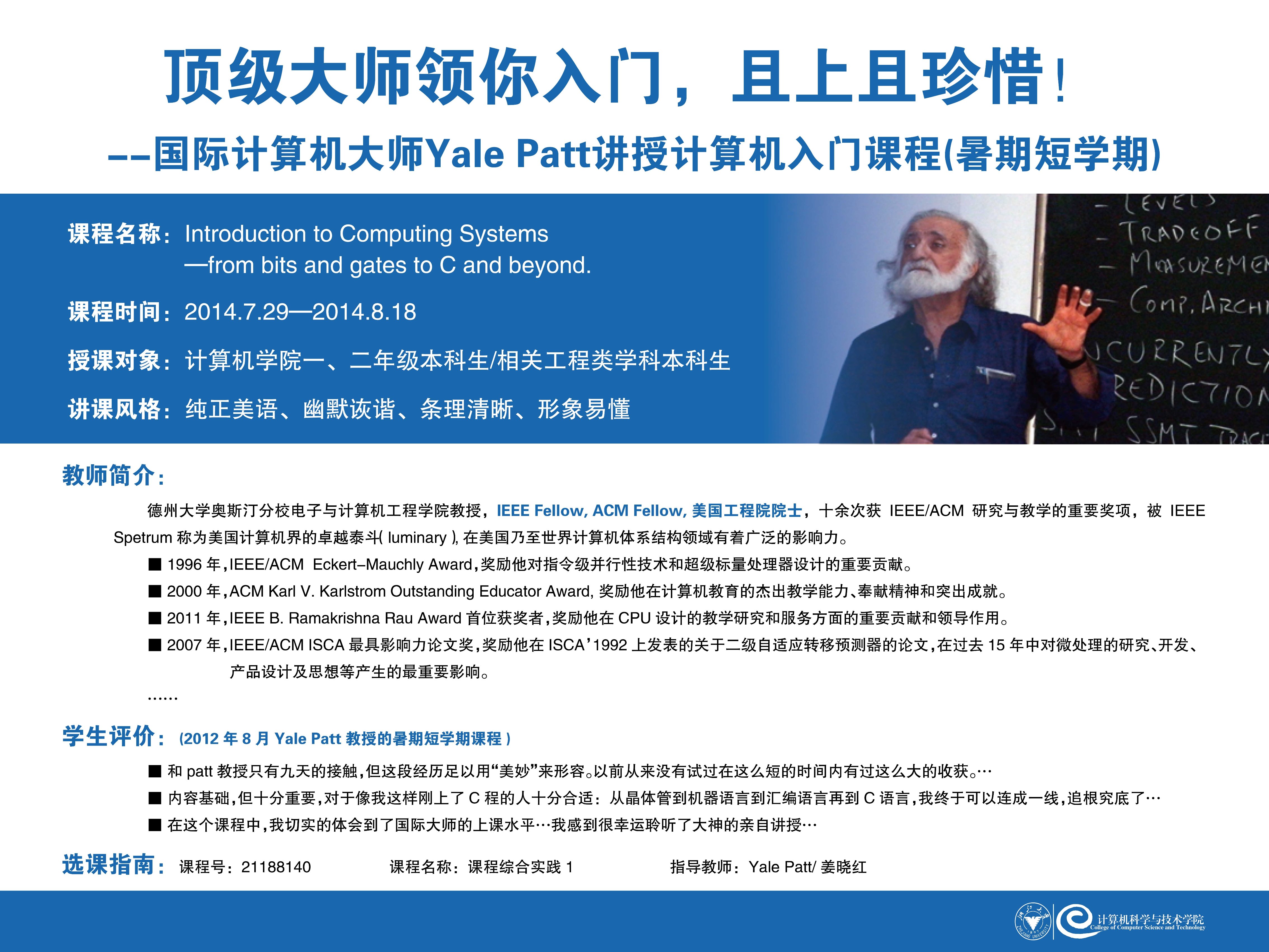 计算机学院暑期有国际计算机大师讲授计算机入门课程,根据他的意见,愿意向所有工科相关专业开放,是所有喜欢计算机的工科学生的福分,请感兴趣的学生切莫错过这样的机会噢。 附件:顶级大师领你入门,且上且珍惜 返回原图 /