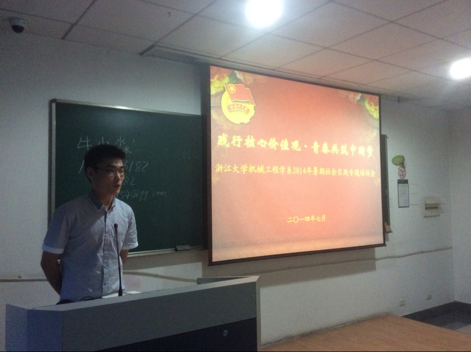 主持人商晓波同学首先回顾了机械系往年的社会实践取得的丰硕成果,同时也介绍了今年机械系社会实践的立项总体状况。随后,团学联实践部牛小淼同学对大家进行了安全知识培训和信息报送培训。他从自身工作经验出发,结合许多详细的例子,向大家详细讲述实践前期准备、实践过程要求、以及实践后期的总结和评奖制度。牛小淼提醒同学们实践前期系里会为大家统一购买保险,也叮嘱各个团队做好内部分工,联系好实践基地,提前调查清楚当地的交通、住宿、气候、饮食等条件,切记安全第一。之后,他在信息报送培训上对新闻和照片的格式、内容、报送渠道等方面进行了详尽的讲解。