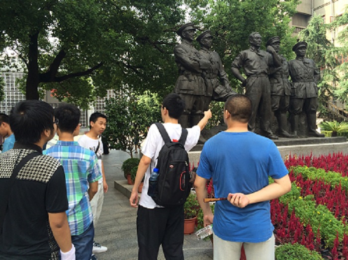 随后,队员们又走访了贺龙指挥部旧址,探寻了贺龙生平事迹。贺龙出生在封建旧社会,为革命奉献了一生。从“两把菜刀闹革命”,到新中国十大元帅之一,贺龙的一生光荣而伟大,体现了个人的英雄气质与革命热情,而他的一生也是中国许多革命者的一个缩影。最后,队员们参观了新四军军部旧址,结束了一天的活动。在南昌的第一天,队员们充分感受到了这座英雄城市的浓厚的红色气氛和悠久的革命传统。